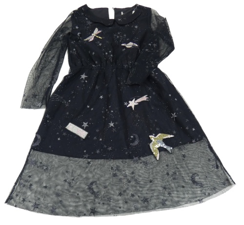 Černé tylové šaty s hvězdičkami a obrázky s flitry H&M