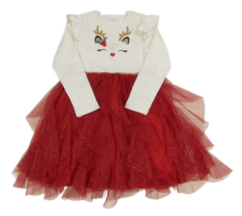 Červeno-bílé žebrované šaty se sobem a volánky a třpytivým tylem PRIMARK