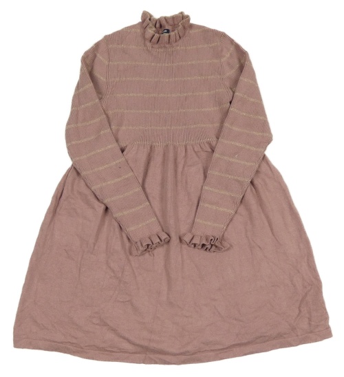 Pudrově fialové žebrované pletené šaty se zlatými pruhy kiabi