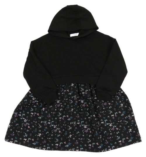Černé teplákové šaty s květovanou sukní a kapucí Primark