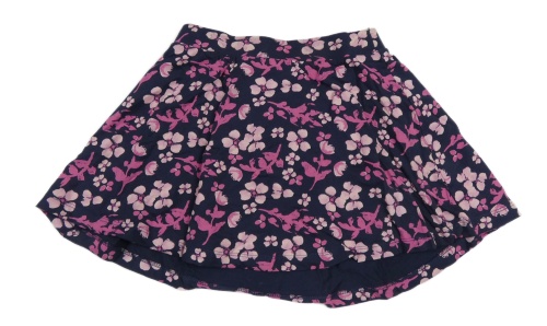 Tmavomodro-růžová tepláková kolová sukně s květy a větvičkami Kids