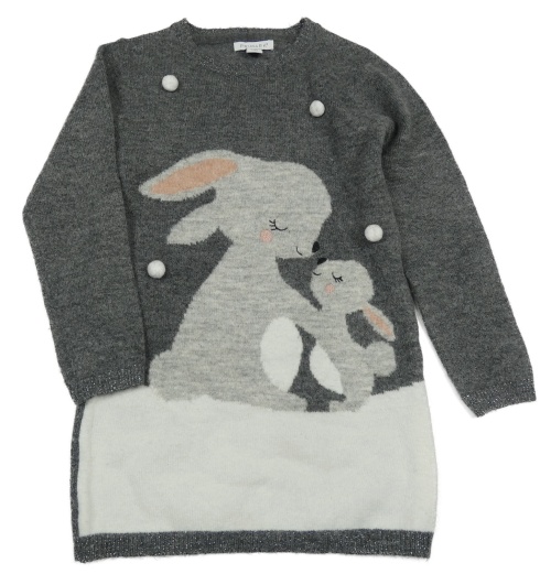 Tmavošedé pletené šaty se zajíčky a bambulkami Primark