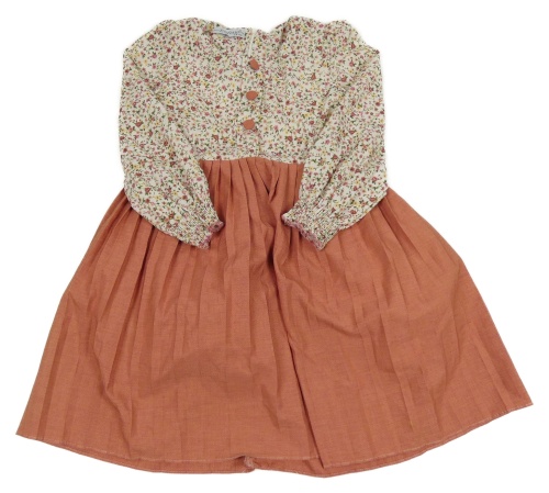 Bílo-starorůžové šaty s květy a plisovanou sukní