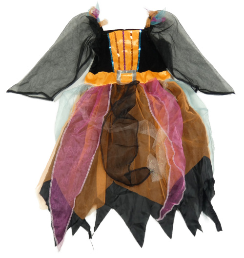 Černo-oranžovo-růžové sametovo/tyové šaty s flitry