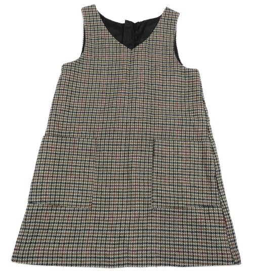 Smetanovo-hnědo-tmavomodro-vínové kostkované vlněné šaty St. Bernard