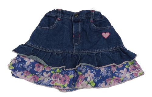 Tmavomodrá riflovo/plátěná sukně se srdíčkem a růžemi a volánky Kids