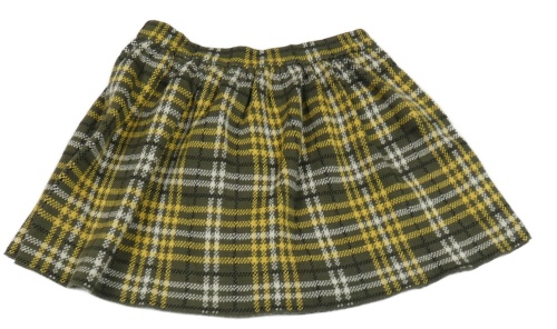 Khaki-bílo-žlutá kostkovaná úpletová sukně