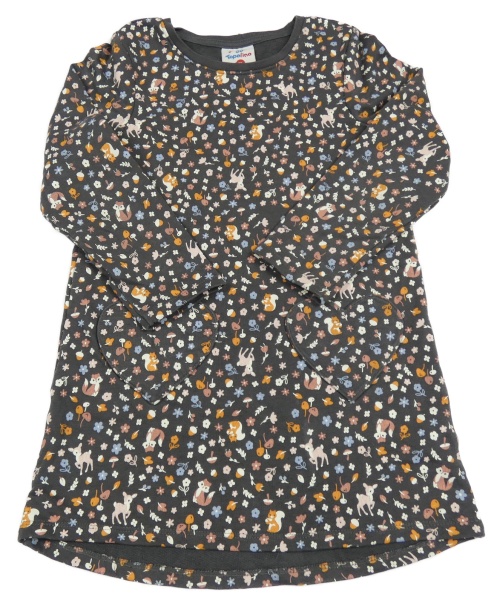 Tmavošedé teplákové šaty s lesními zvířaty a plody Topolino