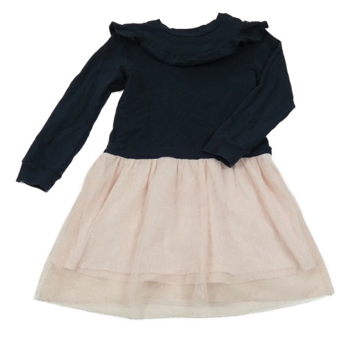 Tmavomodro-světlerůžové teplákovo/tylové šaty s volánkem a puntíky name it.