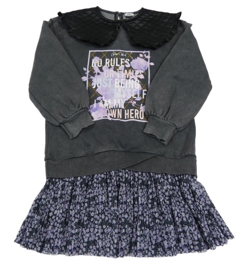 Tmavošedo-černé teplákové šaty s květy a límečkem River Island