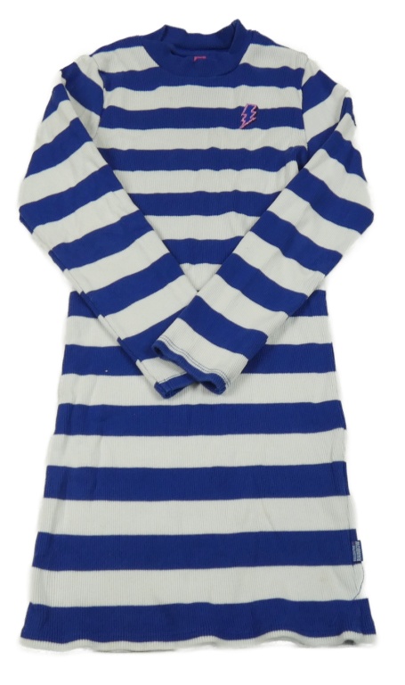 Modro-bílé pruhované žebrované šaty s bleskem WE