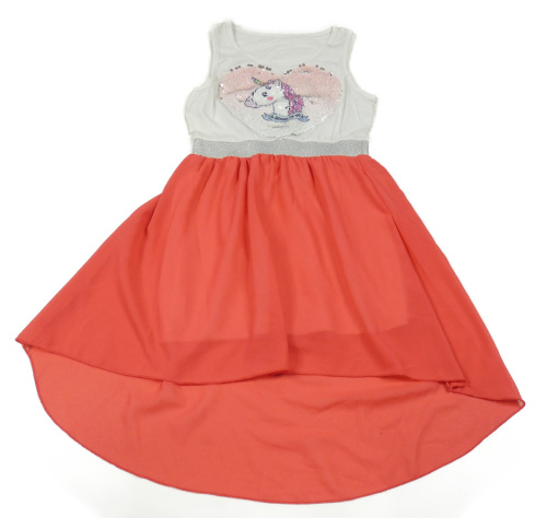 Bílo-korálové šifonové šaty s jednorožcem z flitrů