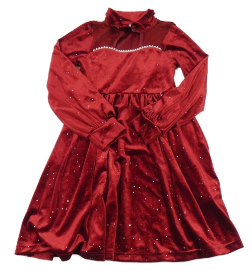 Červené sametové šaty se třpytkami a límečkem Shein