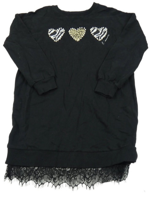 Černé teplákové šaty se srdíčky s perlami a krajkovým volánkem LIPSY LONDON