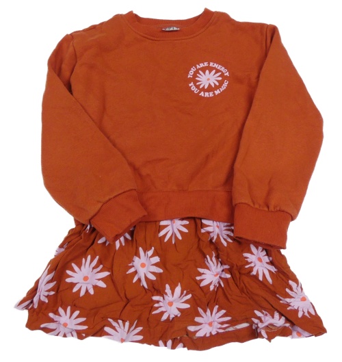 Rezavé šaty s květy a nápisy L&D