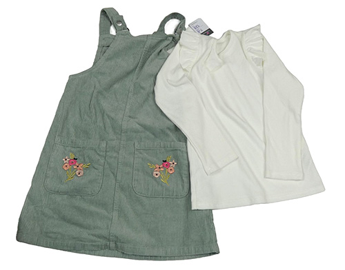 Nové - 2set - Zelenošedé manšestrové laclové šaty s výšivkami květin + smetanové žebrované triko s volánky Primark