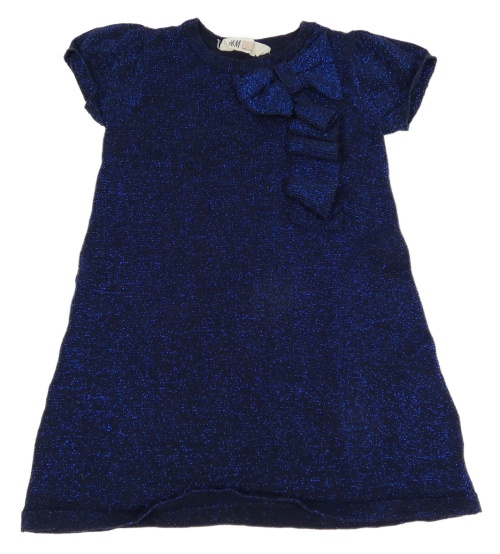 Tmavomodré třpytivé svetrové šaty s volánem a mašlí H&M