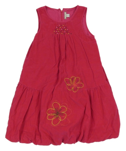 Malinové manšestrové balonové podšité šaty s květy ORCHESTRA
