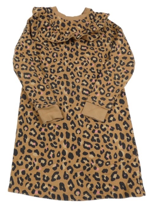 Béžovo-černo-růžové vzorované teplákové šaty s volánky F&F