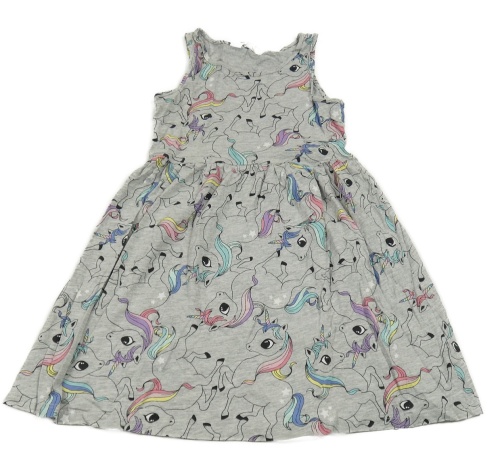Šedé šaty s jednorožci s barevnou hřívou H&M