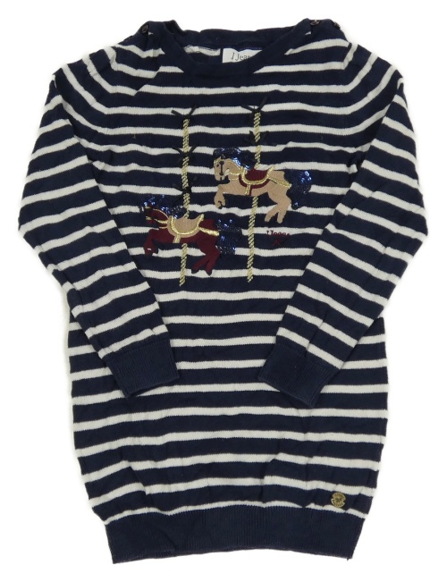 Tmavomodro-bílé pruhované svetrové šaty s koňmi s flitry J Jeans