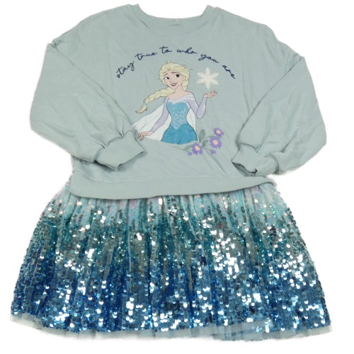 Světlemdrošedo-modré teplákovo/tylové šaty s Elsou a flitry M&S