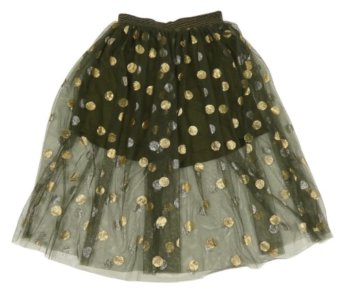 Khaki tylová sukně se zlatými puntíky Shein