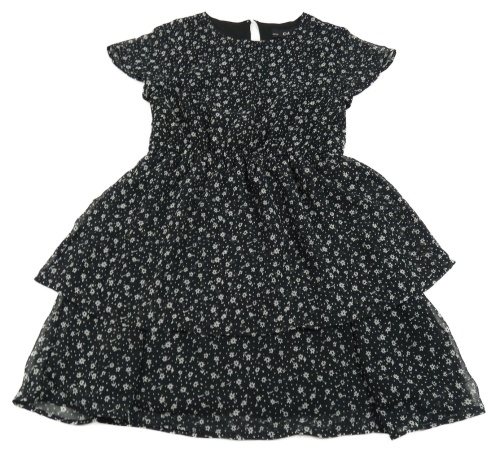 Černé puntíkaté šifonové šaty s kytičkami a volánkem C&A