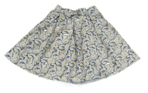 Světlemodro-zlatá květovaná kolová sukně