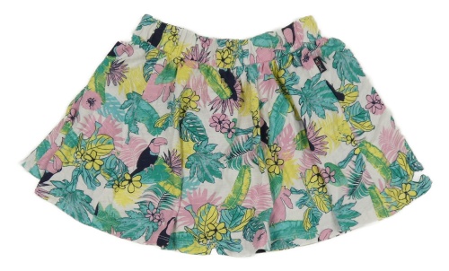 Bílo-zeleno-růžovo-žlutá sukně s listy a tukany Kids