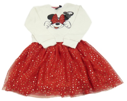 Nové - bílo-červené teplákovo/tylové šaty s Minnie s flitry a hvězdičkami PRIMARK