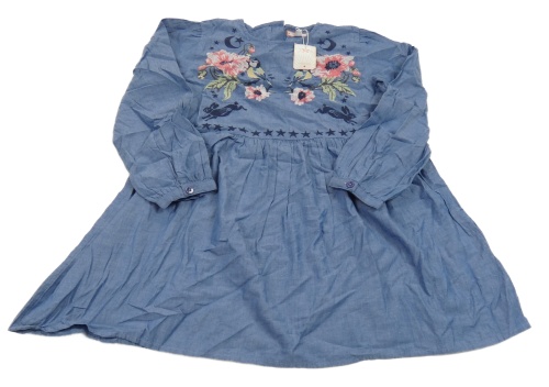 Nové - Modré lehké šaty s květy a ptáčky