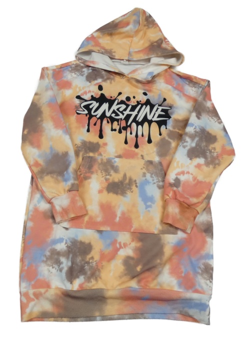 Barevné batikované teplákové šaty s nápisem a kapsou a kapucí SHEIN