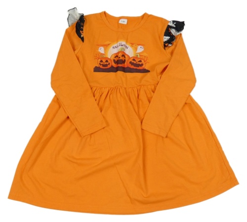 Oranžové bavlněné šaty s dýněmi a volánky
