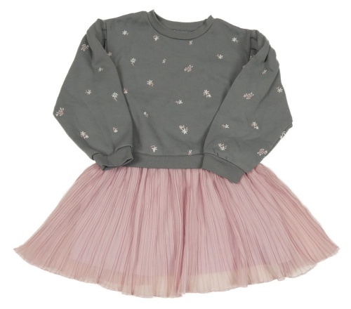 Šedo-růžové teplákovo/plisované šaty s kytičkami PRIMARK