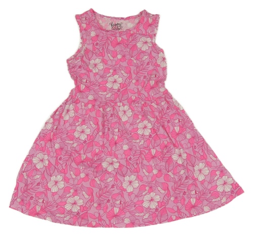 Růžovofialové šaty s květy a lístečky C&A