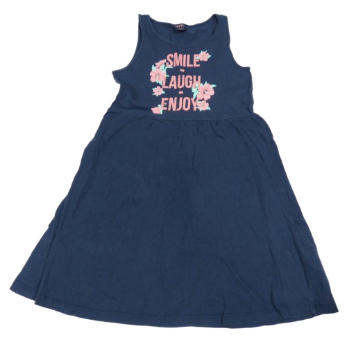 Tmavomodré bavlněné šaty s nápisem a květy Y.F.K.