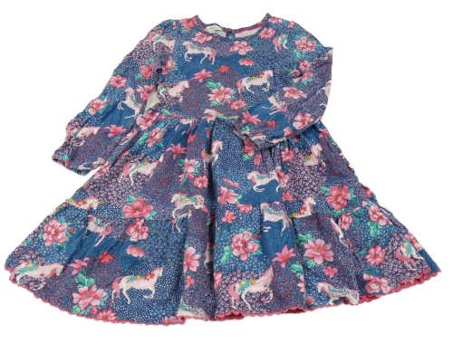 Tmavomodré puntíkaté šaty s jednorožci a kytičkami Monsoon