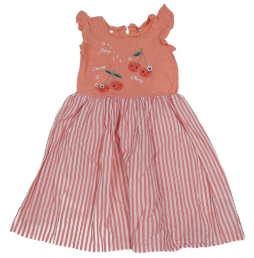 Broskvovo-pruhované bavlněno/plátěné šaty s třešničkami