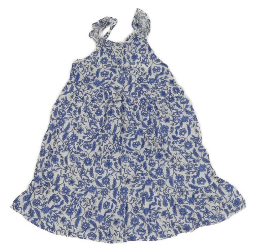 Bílo-zvonkově modré letní šaty s volánky PRIMARK