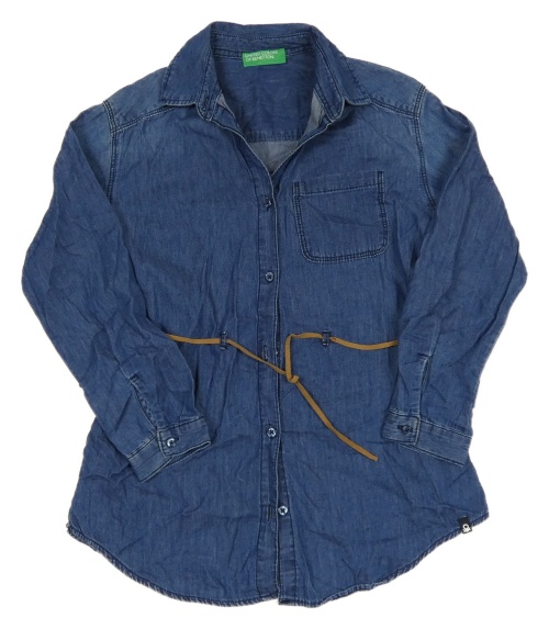 Tmavomodrá propínací šatová košilová tunika s páskem Benetton