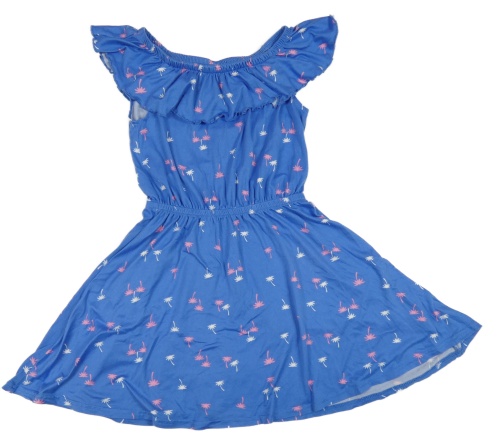 Zvonkově modré šaty s palmami a volánkem Y.F.K.