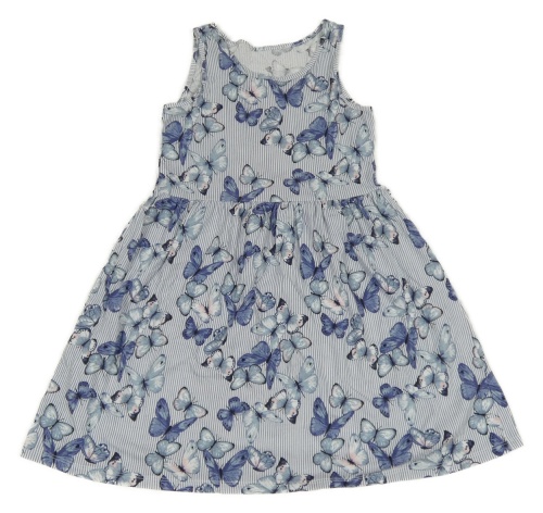 Modro-bílé proužkované bavlněné šaty s motýlky