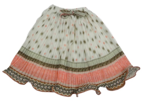 Smetanovo-růžovo-khaki vzorovaná šifonová plisovaná sukně