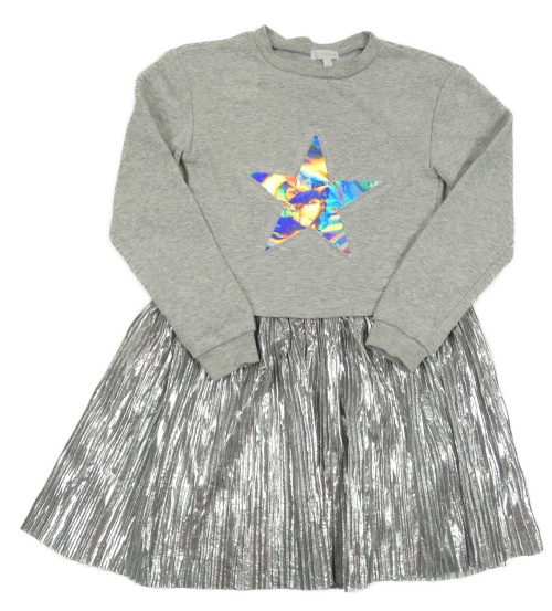 Šedo-stříbrné teplákovo/plisované šaty s hvězdou