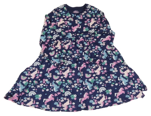Tmavomodro-barevné květované bavlněné šaty s jednorožci