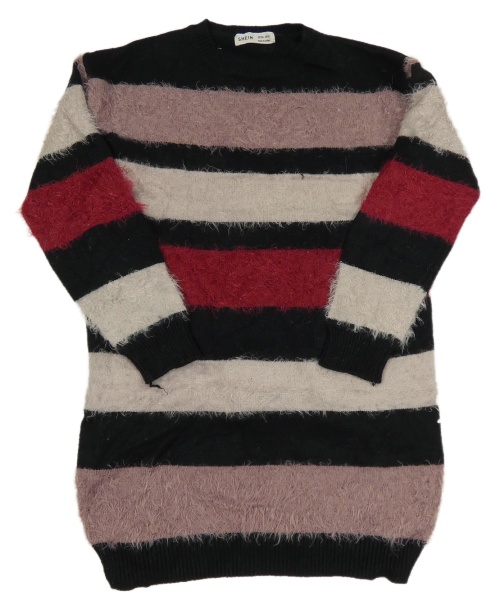 Černo-lila-bílo-červené pruhované svetrové chlupaté šaty Shein