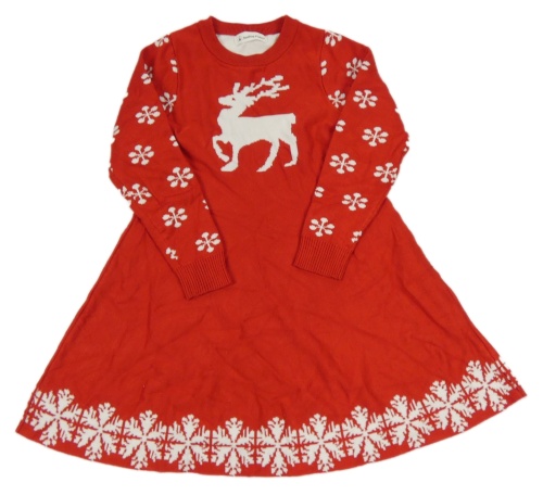 Červené svetrové šaty se sobem a vločkami Smiling Pinker