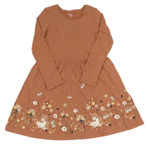 Hnědé bavlněné šaty s jednorožcem a květy C&A