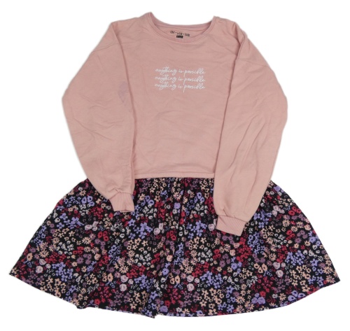 Růžovo-černé teplákové šaty s nápisem a lehkou květovanou sukní F&F
